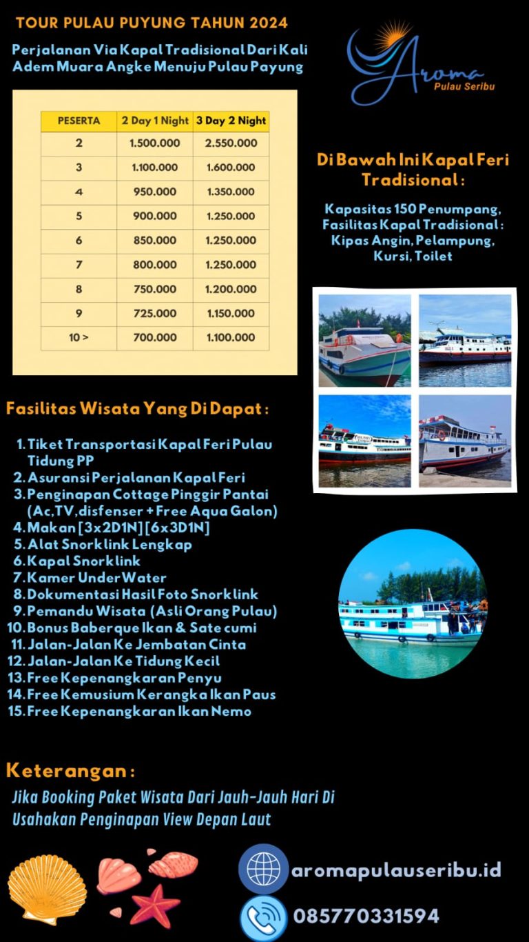 Kami memiliki beberapa pilihan harga paket wisata ke Pulau Payung. Sesuaikan Anggaran Budget anda untuk Liburan ke Pulau Payung. Silahkan anda ber Konsultasi dengan Kami.